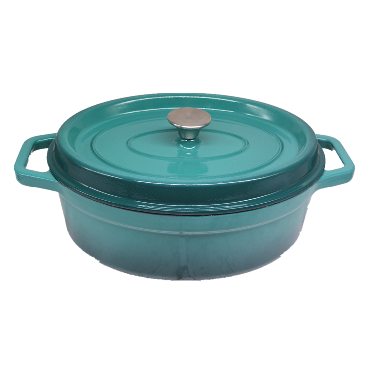 Casserole en fonte émaillée de forme ovale de couleur verte avec couvercle, prix de gros