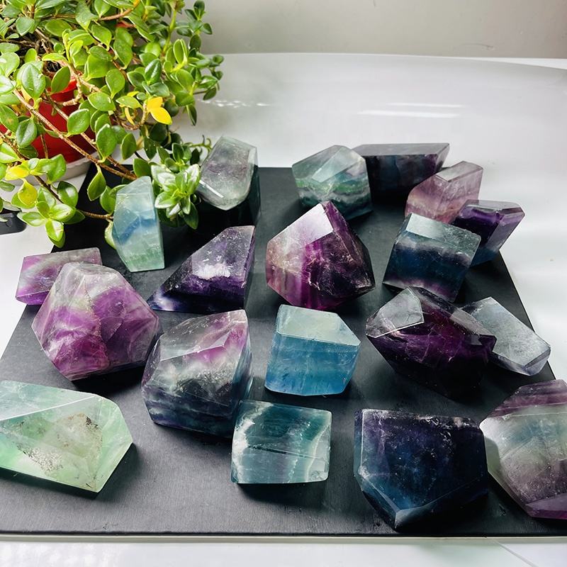 Prix de gros Jolie couleur arc-en-ciel naturel Flourite cristal poli pierre de liberté
