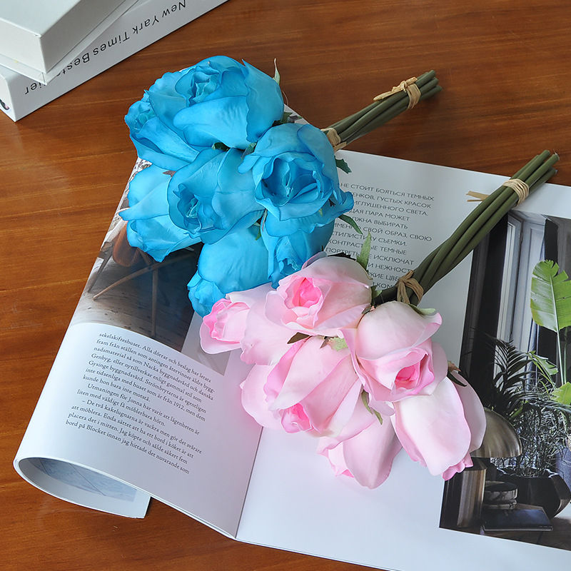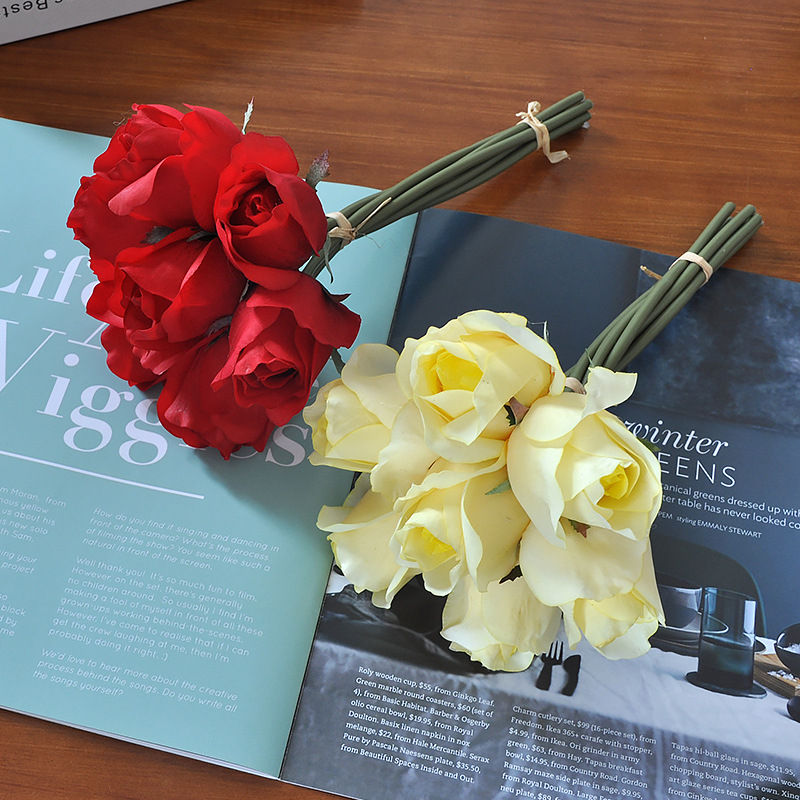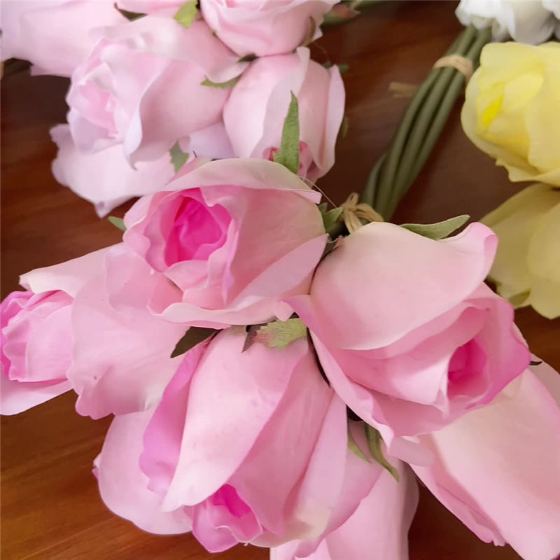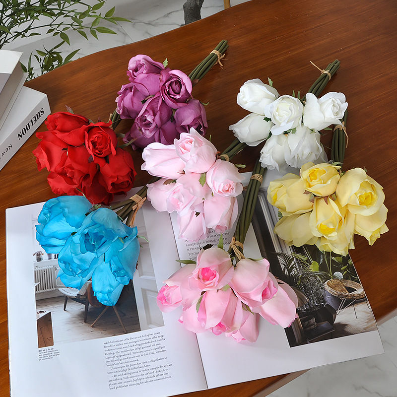 Wholesale Price Real Touch Rose Buds Bundles Artificial 7 Heads Rose Bouquets for Wedding Bridesmaid Flowers