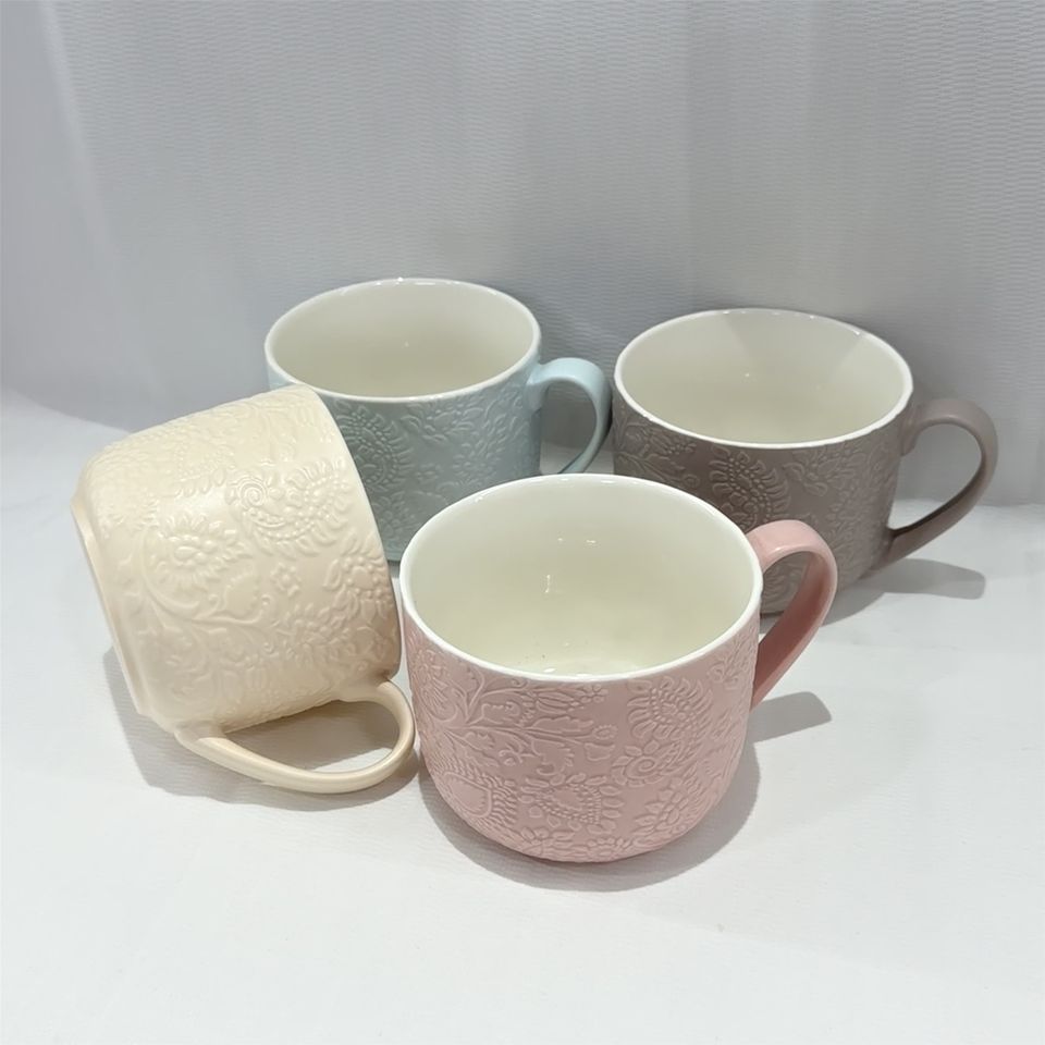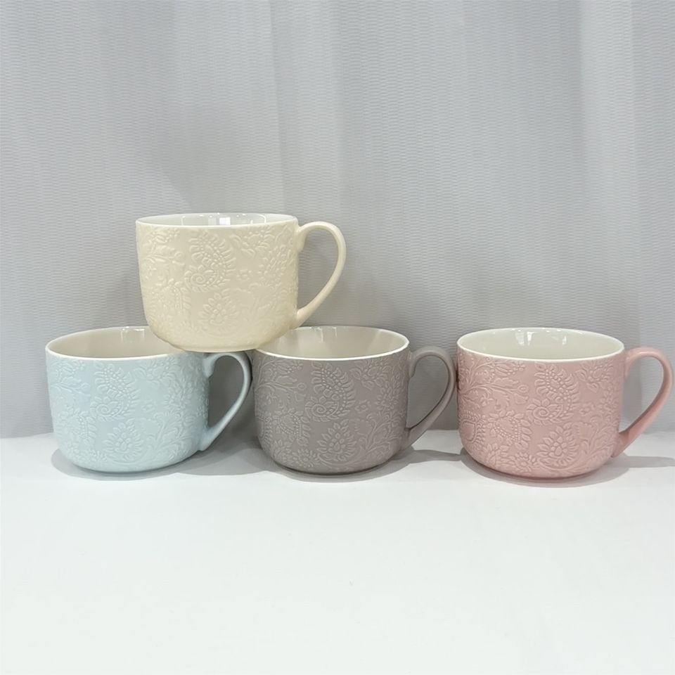 Mug en céramique à motif en relief, couleur unie simple, pour ensemble de boisson, vente en gros de tasses à café en céramique