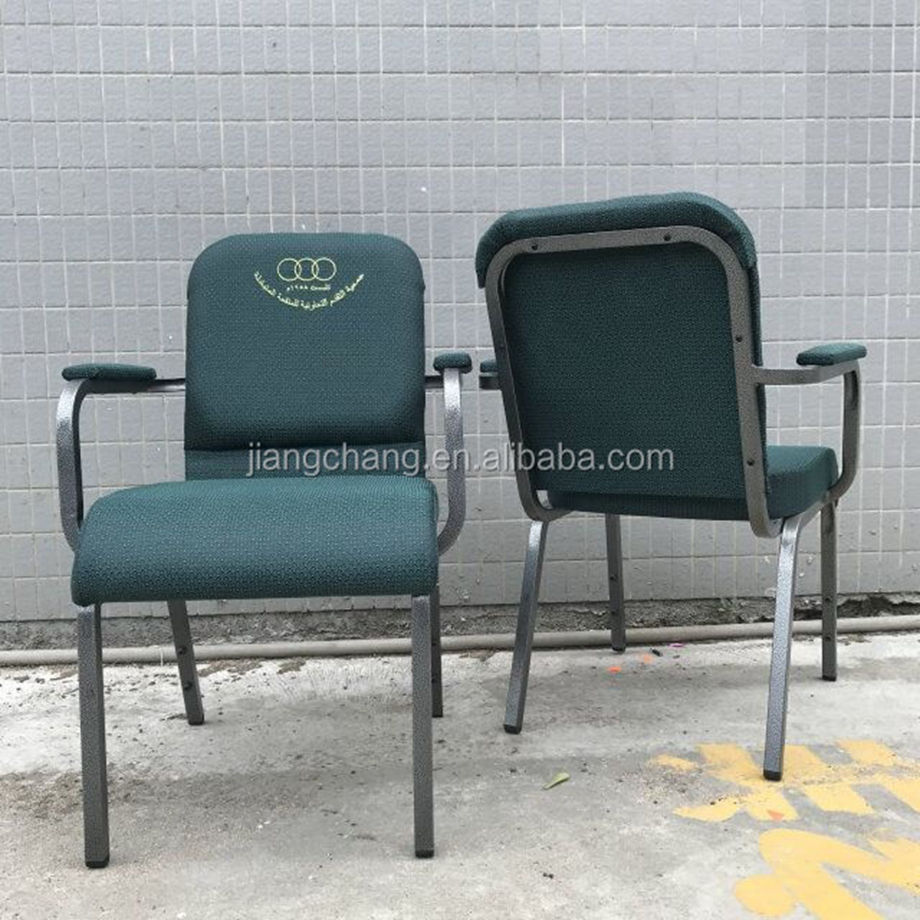 Prix de gros Pile d'ameublement Chaise auditorium tissu vert dans logo personnalisé Cadre noir avec accoudoir