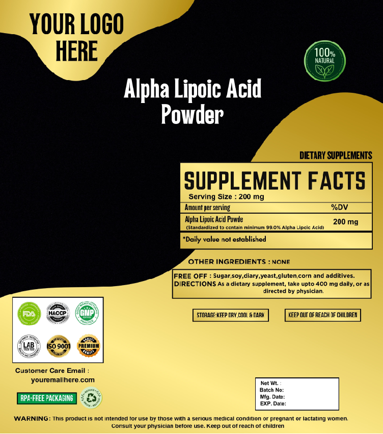 Prix de gros pour la poudre d'acide alpha-lipoïque de qualité alimentaire extrait de plantes directement de l'Inde méthode de culture sauvage