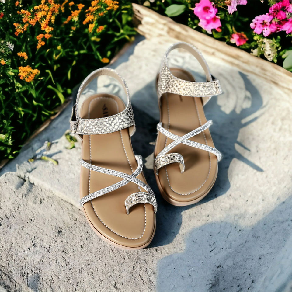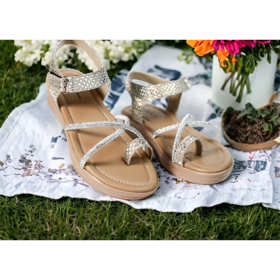 PU semelle douce sandale confortable maille strass blancMateial