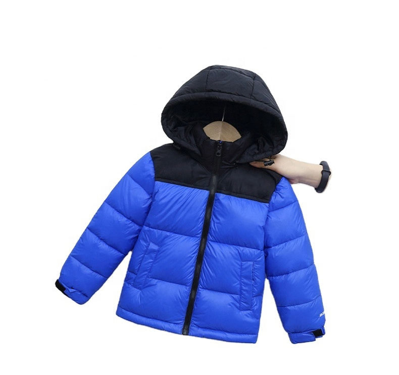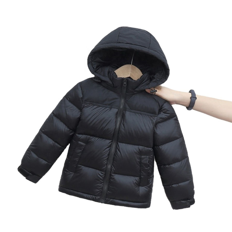Veste matelassée imprimée en gros Manteau épais en duvet à capuche pour garçons et filles Veste chaude d'hiver de couleur unie avec capuche