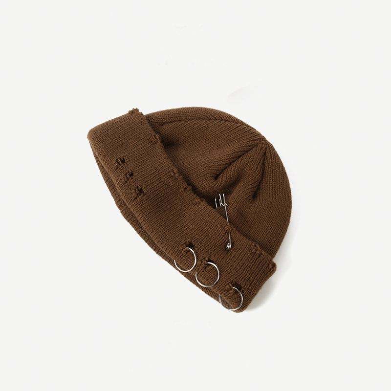Bonnet en tricot à manchette courte avec patch personnalisé de marque privée en gros bonnet de pêcheur en détresse avec crampons pour hommes femmes