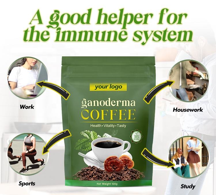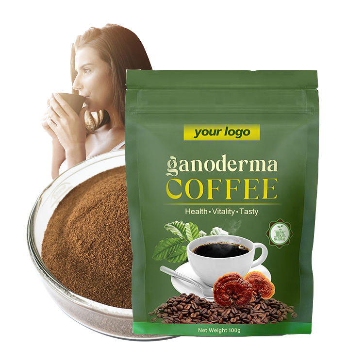 Café instantané 4-en-1 au Ganoderma Lucidum (Lingzhi) et au Ginseng, marque distributeur, en gros, emballage en sachet, saveur amer