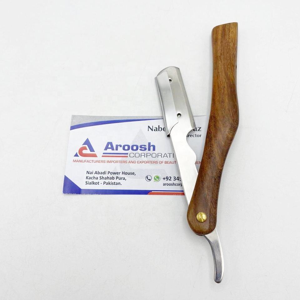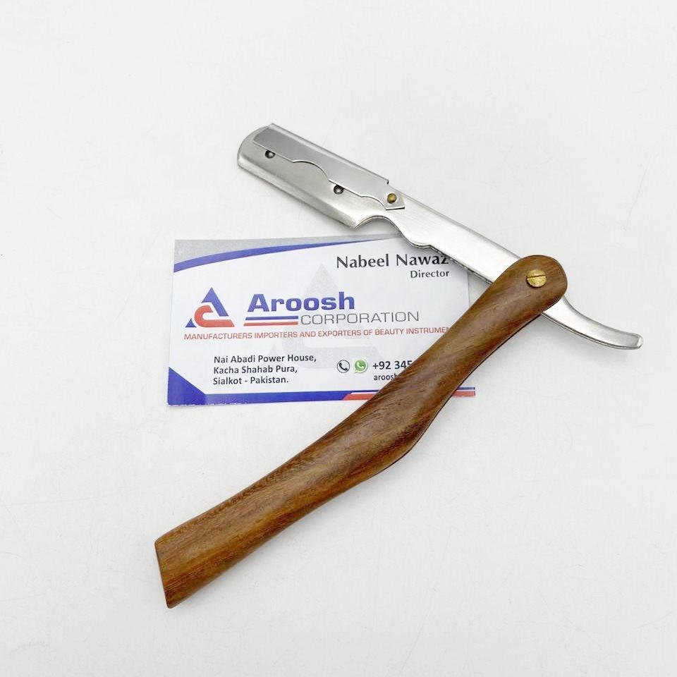 Vente en gros de rasoirs de coiffeur professionnels Manche en bois à lame unique en acier durable pour salon de coiffure Aroosh Corp AC-BR-114
