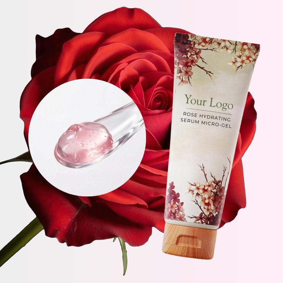 Sérum Micro-Gel Hydratant Avancé à la Rose, Personnalisé, Professionnel, en Gros, avec PGA, Verrouillage de l'Hydratation, Blanchissant, Anti-Âge, Fabrication Privée