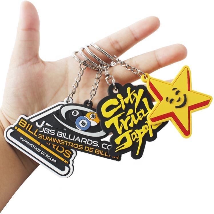 Porte-clés promotionnels en PVC en gros, avec logo personnalisé, anneau métallique moulé par injection, accessoires sur mesure
