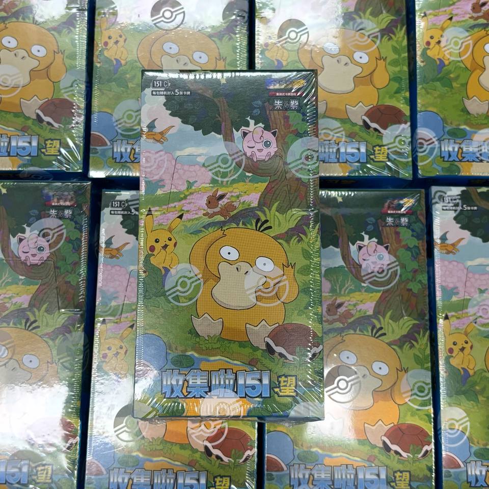 Vente en gros de cartes à collectionner Psyduck 151 Wang Collection, jeu de cartes à collectionner authentique Pokémon, 20 paquets par boîte, cartes réelles, boîte cadeau Chine