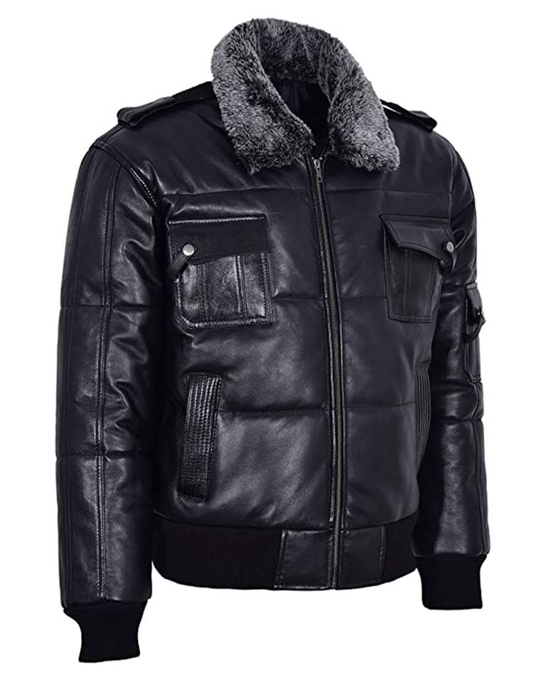 Wholesale Puffer Bomber Leather Jacket Casual Winter Style OEM Service Front Logo Position XL Plain Dyed Technique