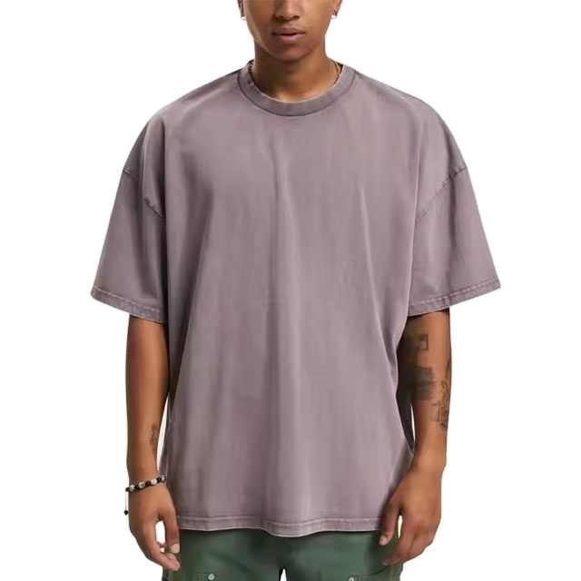 Wholesale Pure Cotton Sun Faded Drop Shoulder grey Acid Wash T-shirt Oversized Heavyweight Custom Logo Printed