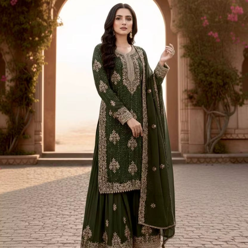 Printing Methods:Heavy Embroidery 5 mm Sequence Work With Jarkhan Diamond Work