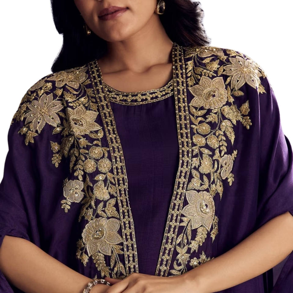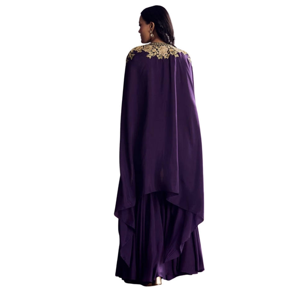 Wholesale Purple Silk Sharara with Zari Cape for Wedding Party Wear Festive Reception and Custom Ethnic Orders