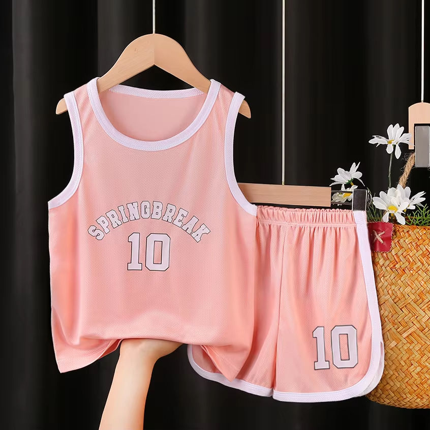 Ensemble de sport pour garçons en polyester respirant à séchage rapide KDT40, imprimé, collection été, débardeurs de basketball pour enfants - Vente en gros