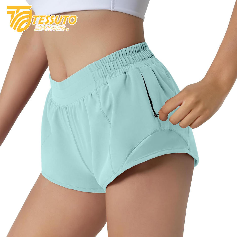 Vente en gros Short de course à séchage rapide Sport double couche taille élastique Short de yoga d'entraînement actif Short de cyclisme en plein air pour femmes