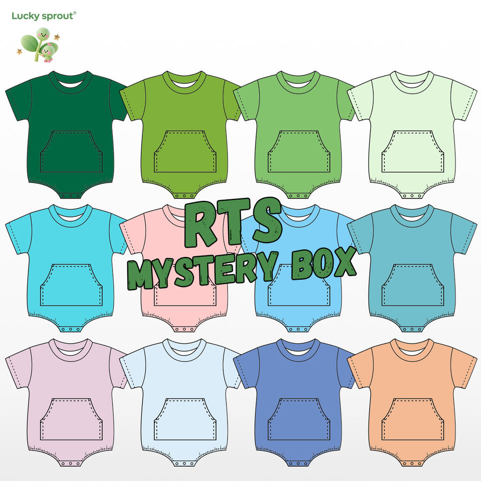Vente en gros RTS Nouveau-né Boîte surprise Vêtements pour bébé Col rond Haute qualité Coton uni personnalisé Unisexe Combinaison bébé avec poche