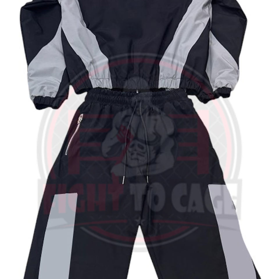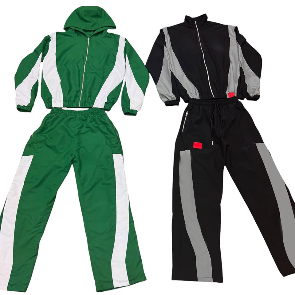 Survêtement décontracté en tissu mémoire de polyester tissé 2026 avec logo personnalisé, ensemble deux pièces coupe-vent pour homme (veste zippée et pantalon)