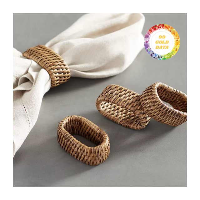 Vente en gros de ronds de serviette en rotin du Vietnam, beaux accessoires de vaisselle faits à la main avec un design rustique et naturel