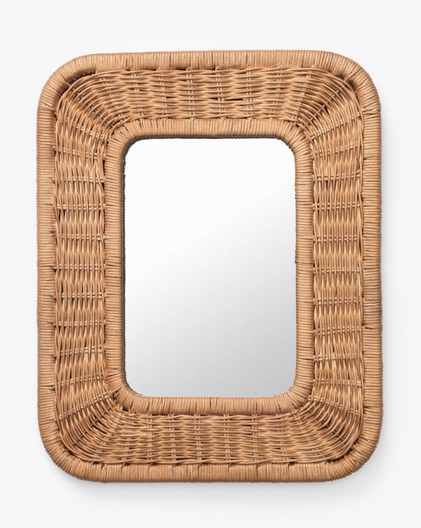 Miroir mural rectangulaire en rotin en gros, cadre en osier, miroir suspendu en rotin naturel décoratif pour salon, chambre à coucher, décoration intérieure