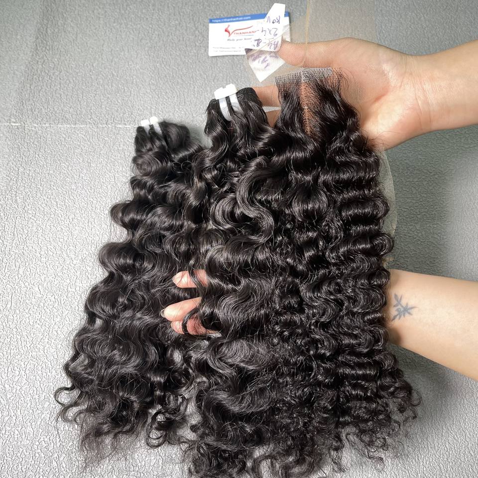 Vente en gros d'extensions de cheveux bouclés birmans bruts 100% extensions de cheveux humains vietnamiens alignés sur la cuticule brute prix d'usine