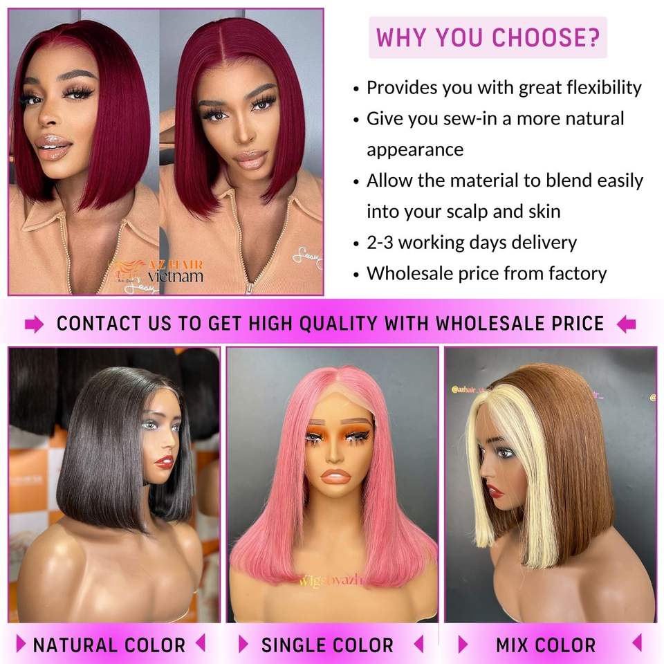 Perruque Bob en cheveux naturels prête à porter en gros pour dentelle frontale suisse, 200g, cheveux vietnamiens bruts, tailles de bonnet S M L