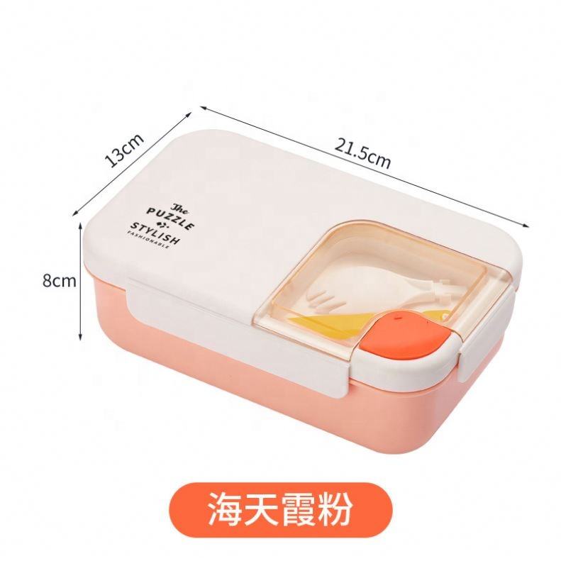 Boîte à lunch rectangulaire en plastique PP moulé par injection, double couche, avec couverts, design à quatre boutons, pour étudiants - Vente en gros