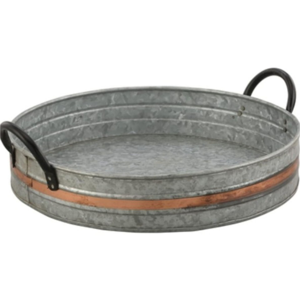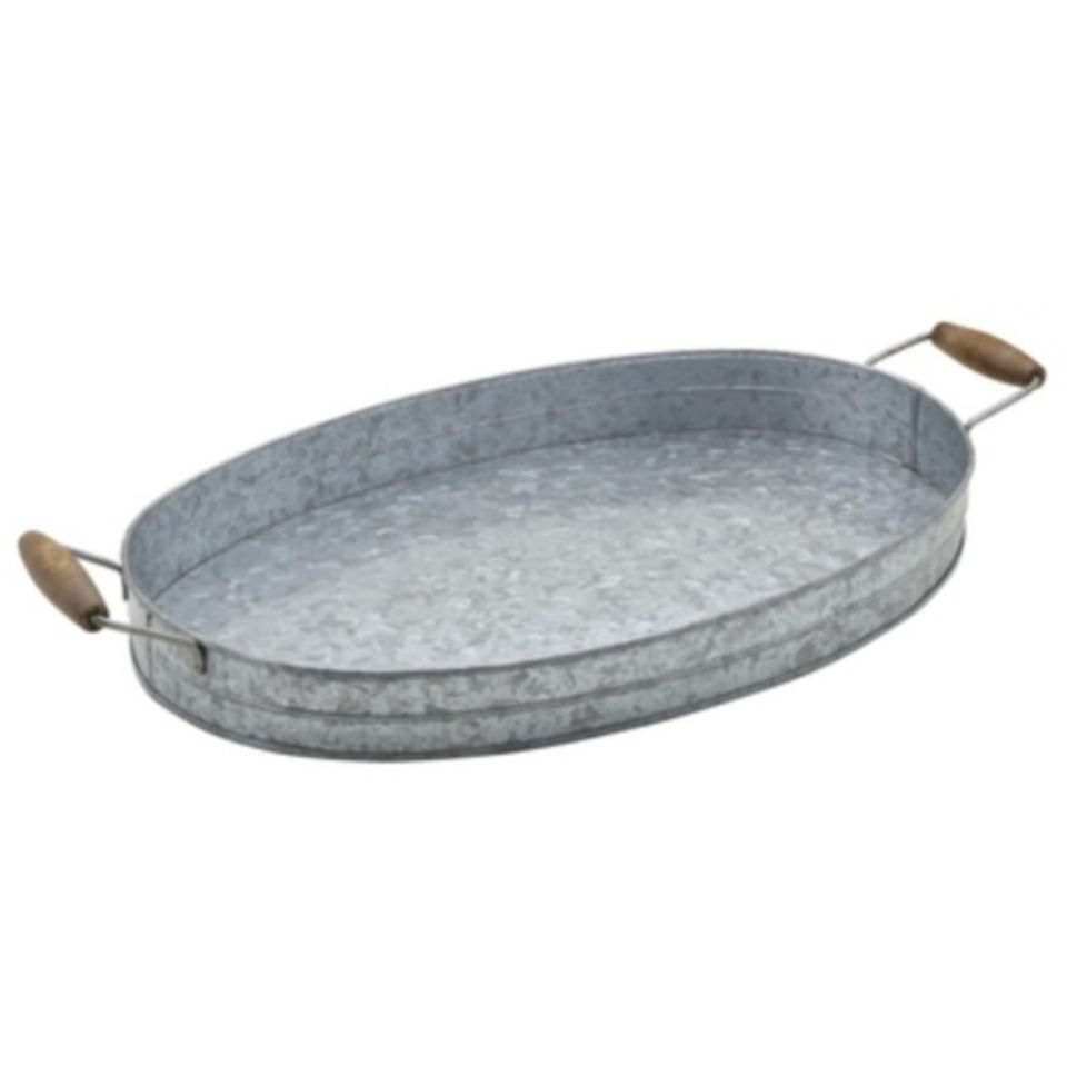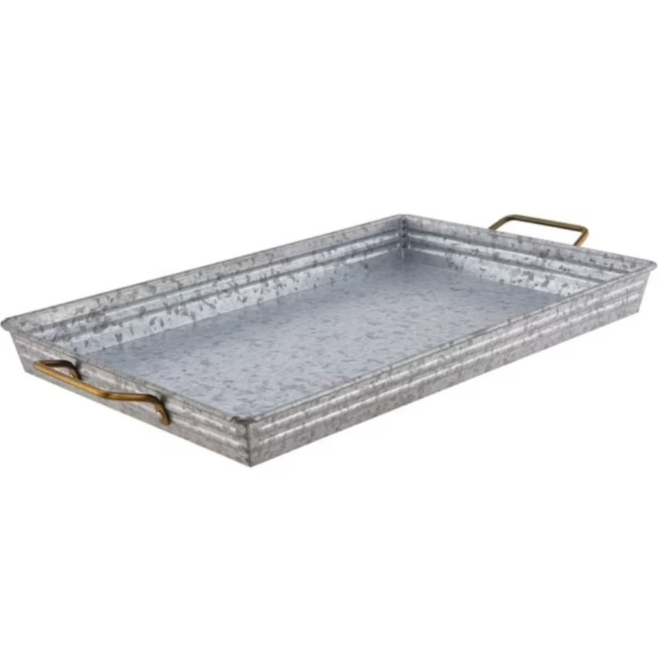 Plateau de service rectangulaire en métal galvanisé avec poignées, style ferme, pour la présentation des aliments et ustensiles de cuisine – En promotion