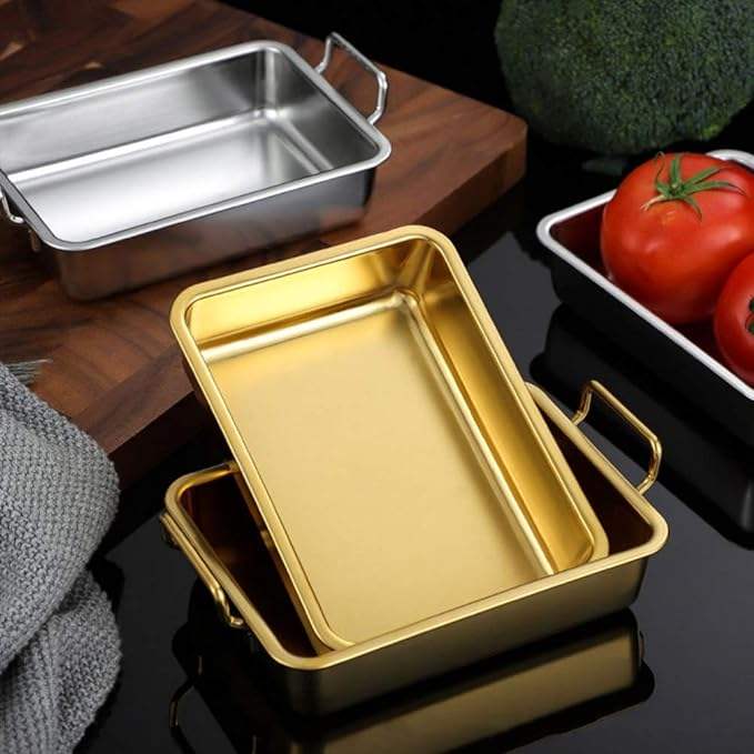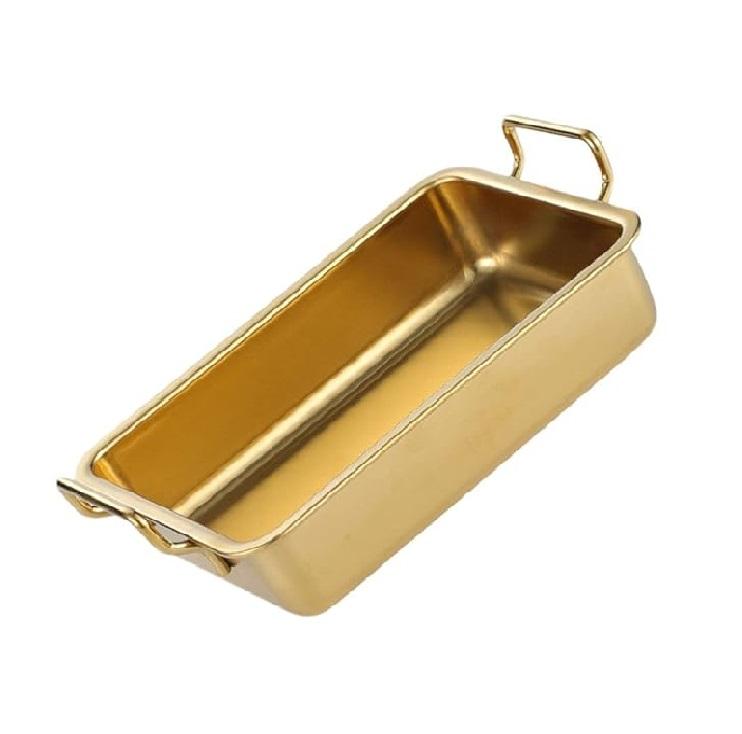 Vente en gros Plaque métallique rectangulaire plaquée or Plateau de service personnalisé en acier inoxydable de luxe
