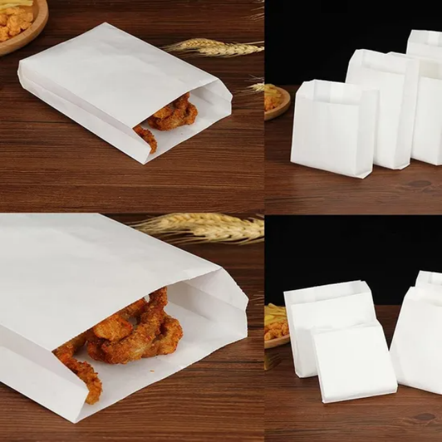 Sacs en papier kraft écologiques et recyclables résistants à l'huile, personnalisables avec logos, pour pain, hamburgers, cornets de bœuf, et plats à emporter