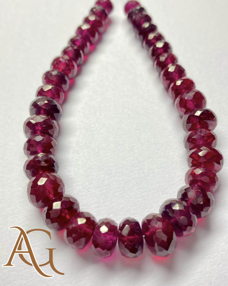 Perles rondes facettées en corindon rouge rubis en gros, provenance Chine, pour la fabrication de bijoux, cristal de quartz synthétique, brin de perles