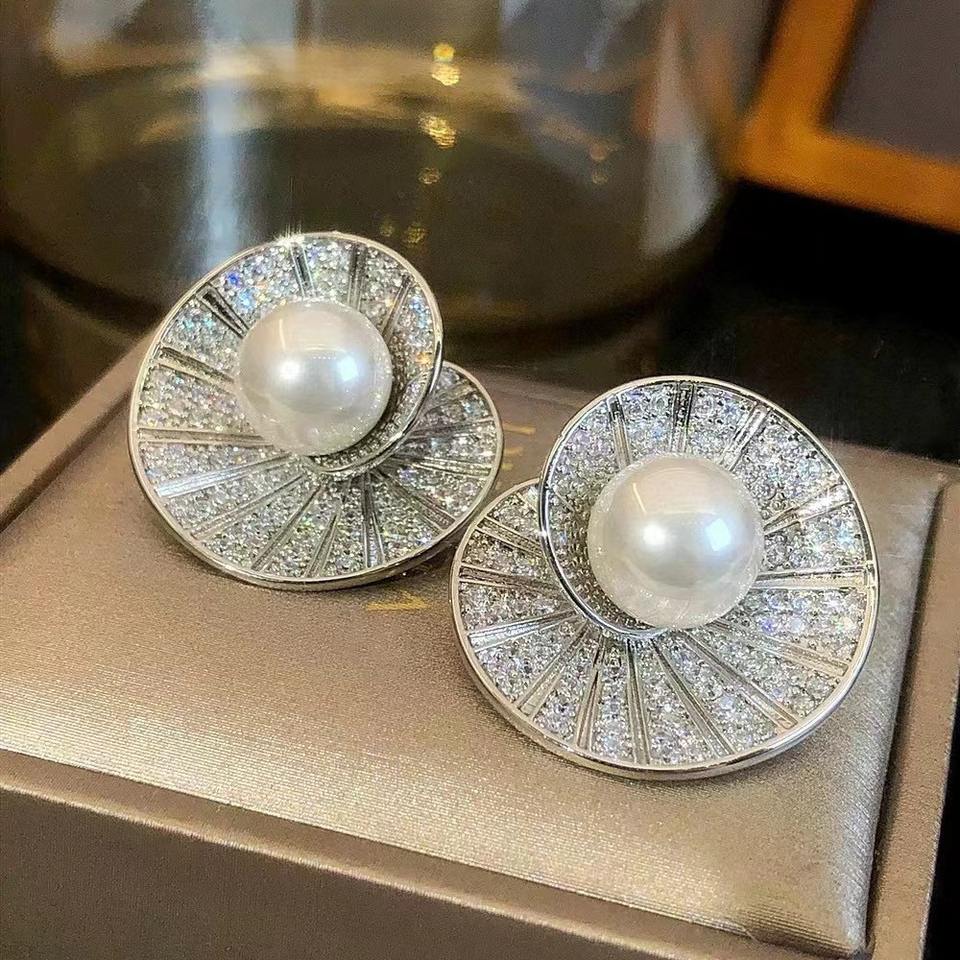 Wholesale Retro Baroque Pearl Earrings with Zircon Luxury Round Design and Natural Pearl Temeprament