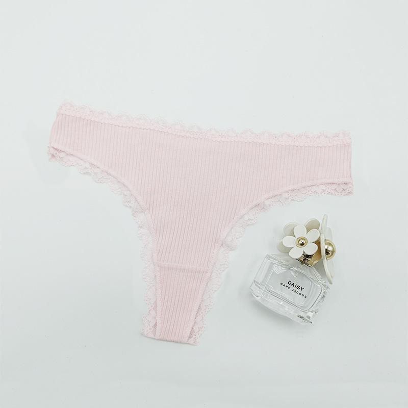 Culottes string côtelées en dentelle pour femmes, respirantes en coton, douces et sexy, taille mi-haute, grandes tailles, vente en gros