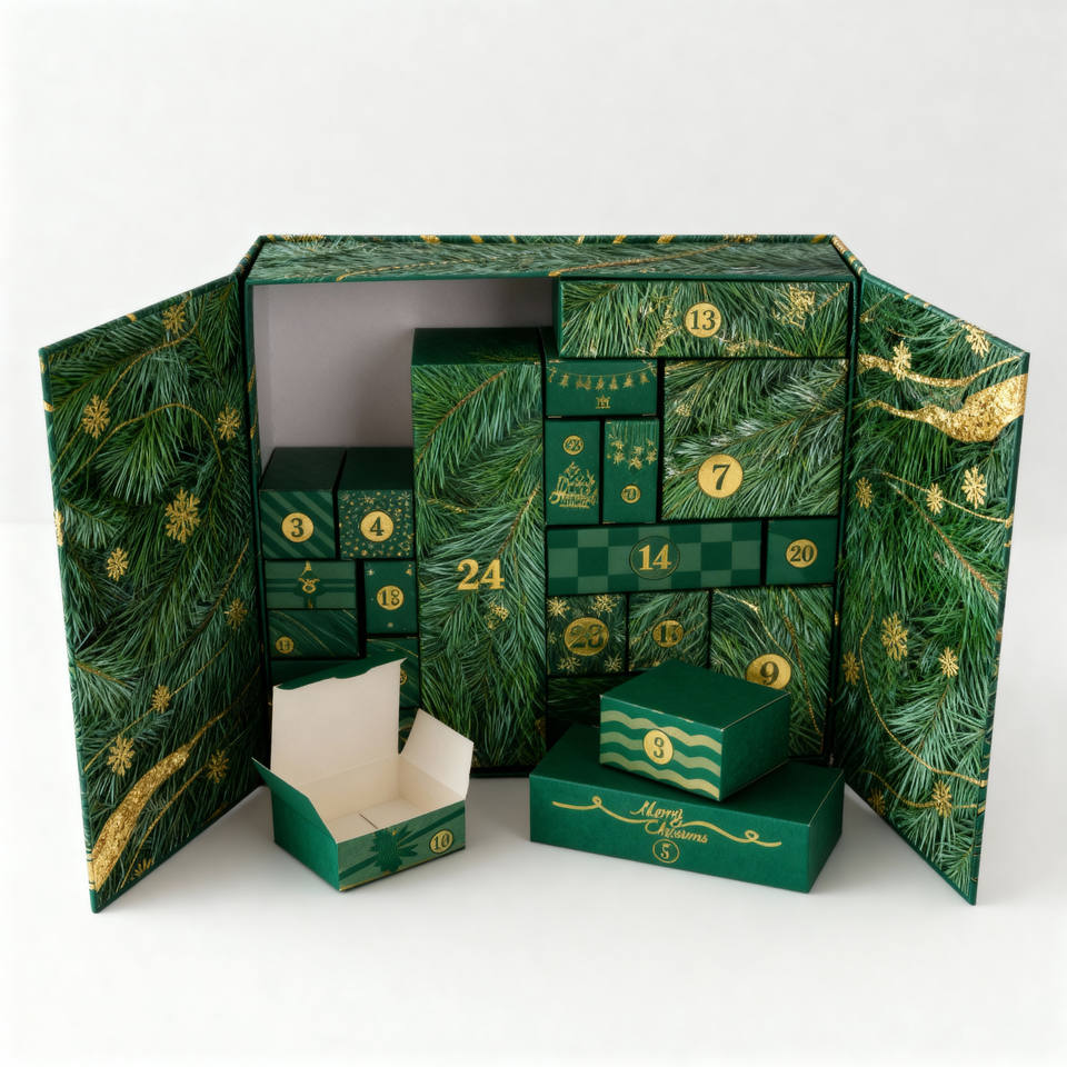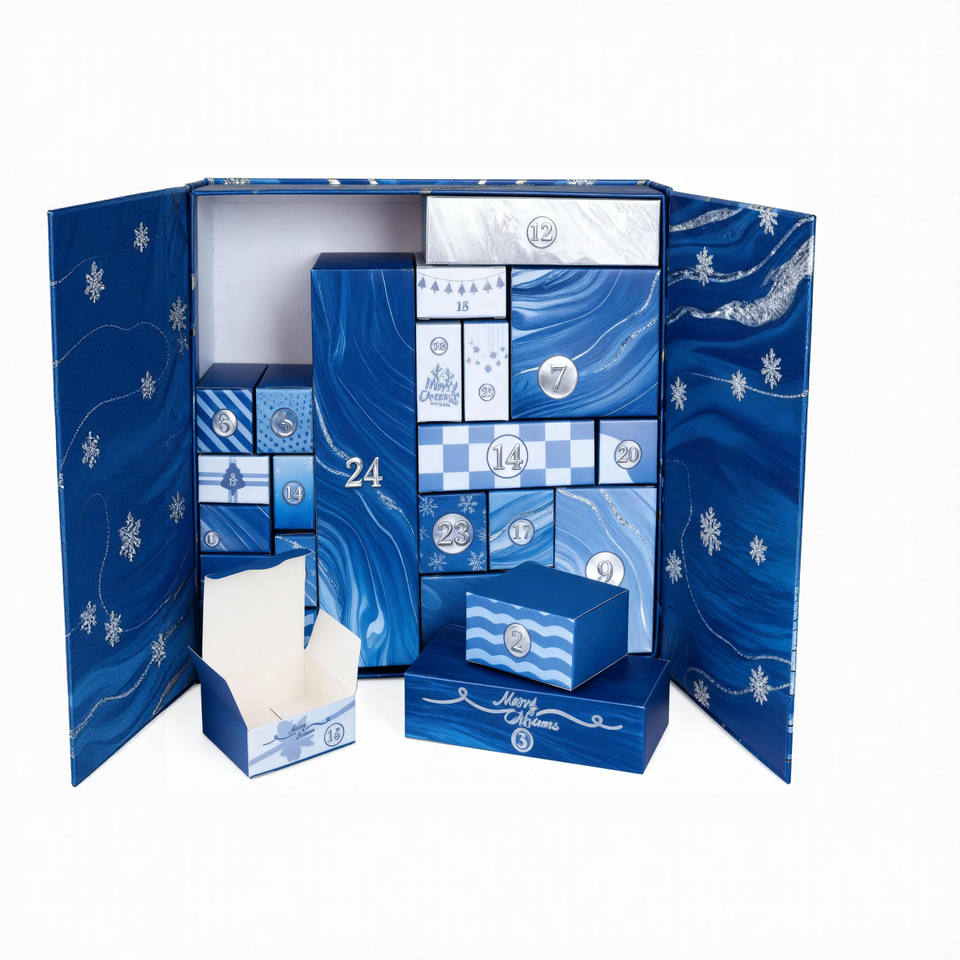 Wholesale Rigid Paperboard Christmas 24 Day Calendar Blind Box Recyclable Countdown Calendar Gift Box for Wedding Chocolate