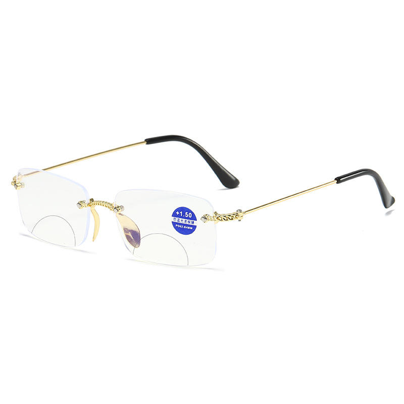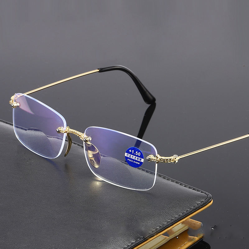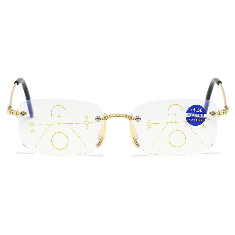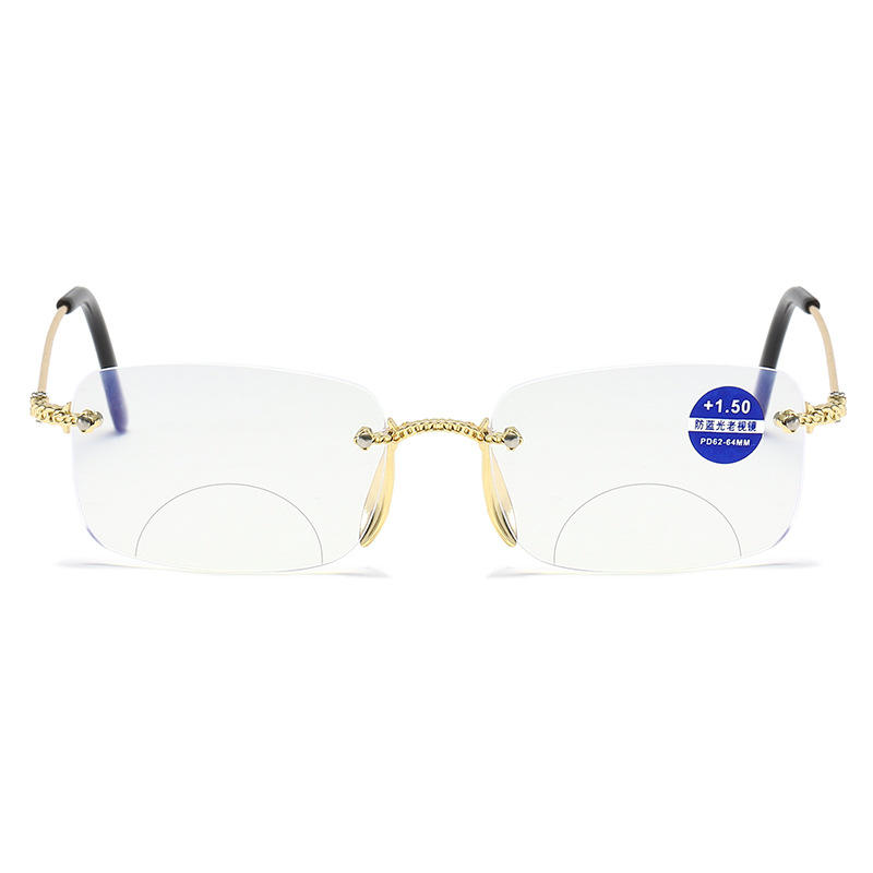 Vente en gros, lunettes de lecture en métal sans monture, anti-lumière bleue, réglables, vision focus, pour hommes