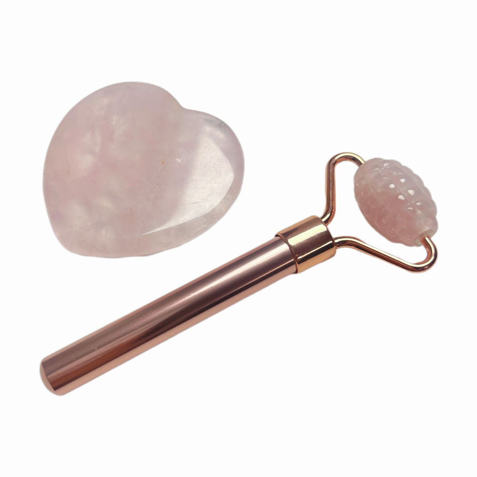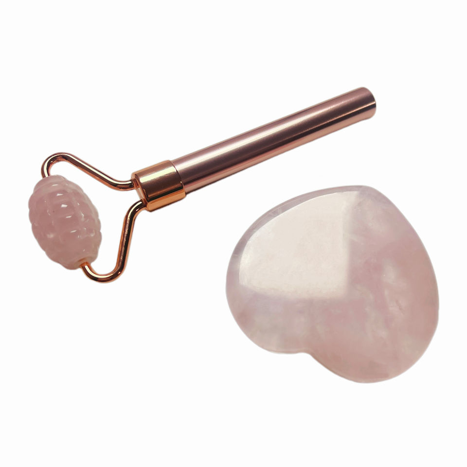 Wholesale Rose Quartz Jade Roller Facial Massage Lifting Tool Metal Handle