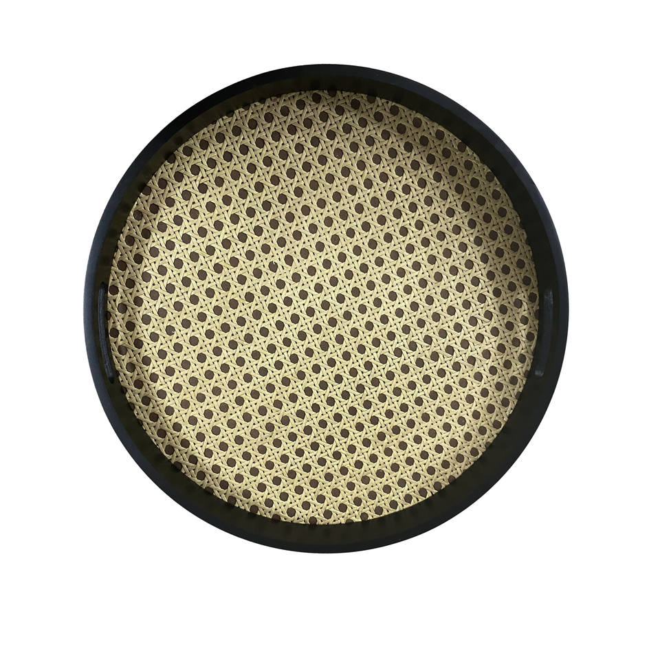 Plateau rond antidérapant en rotin pour bar, vente en gros, avec impression RoHS, caractéristique de gaufrage, origine du matériau, forme brillante, taille du produit