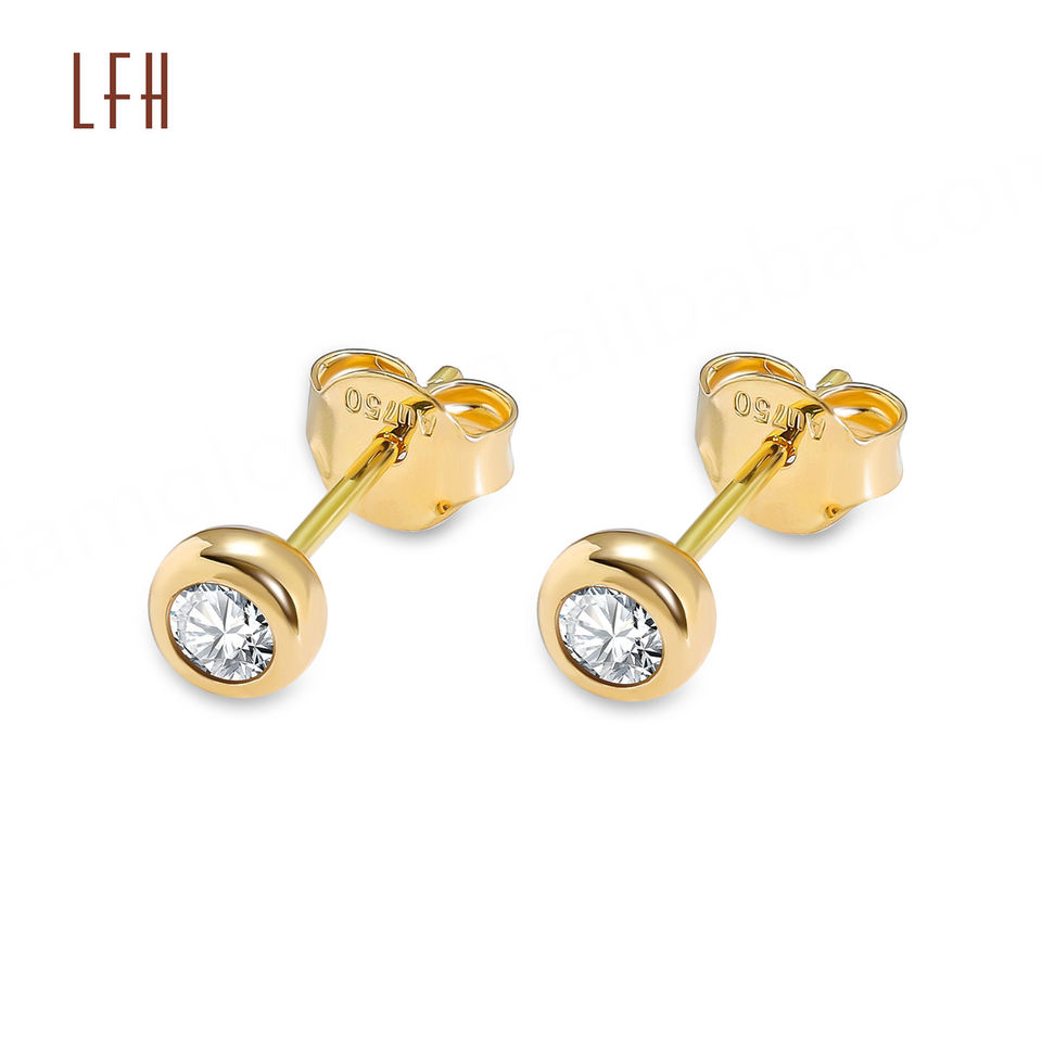 Wholesale Round Cut Bezel CZ Simple Bubble Earrings Oro 18k Original Saudi Gold Jewelry Pawnable 18k Gold Jewelry 18k Real