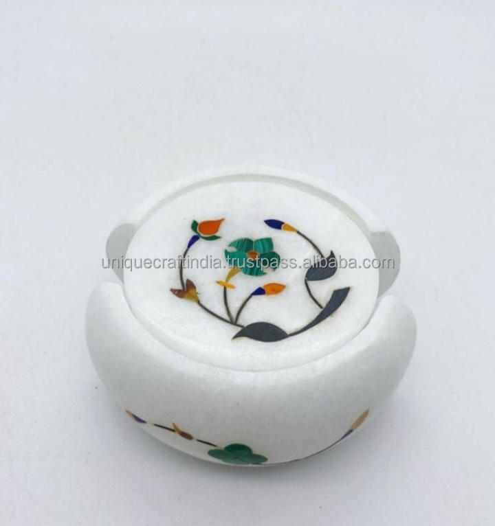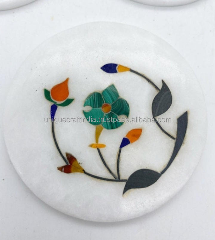Vente en gros de sous-verres ronds en marbre Tapis et tampons en pierre pour le service de thé/café directement de l'Inde Fabricant et fournisseur