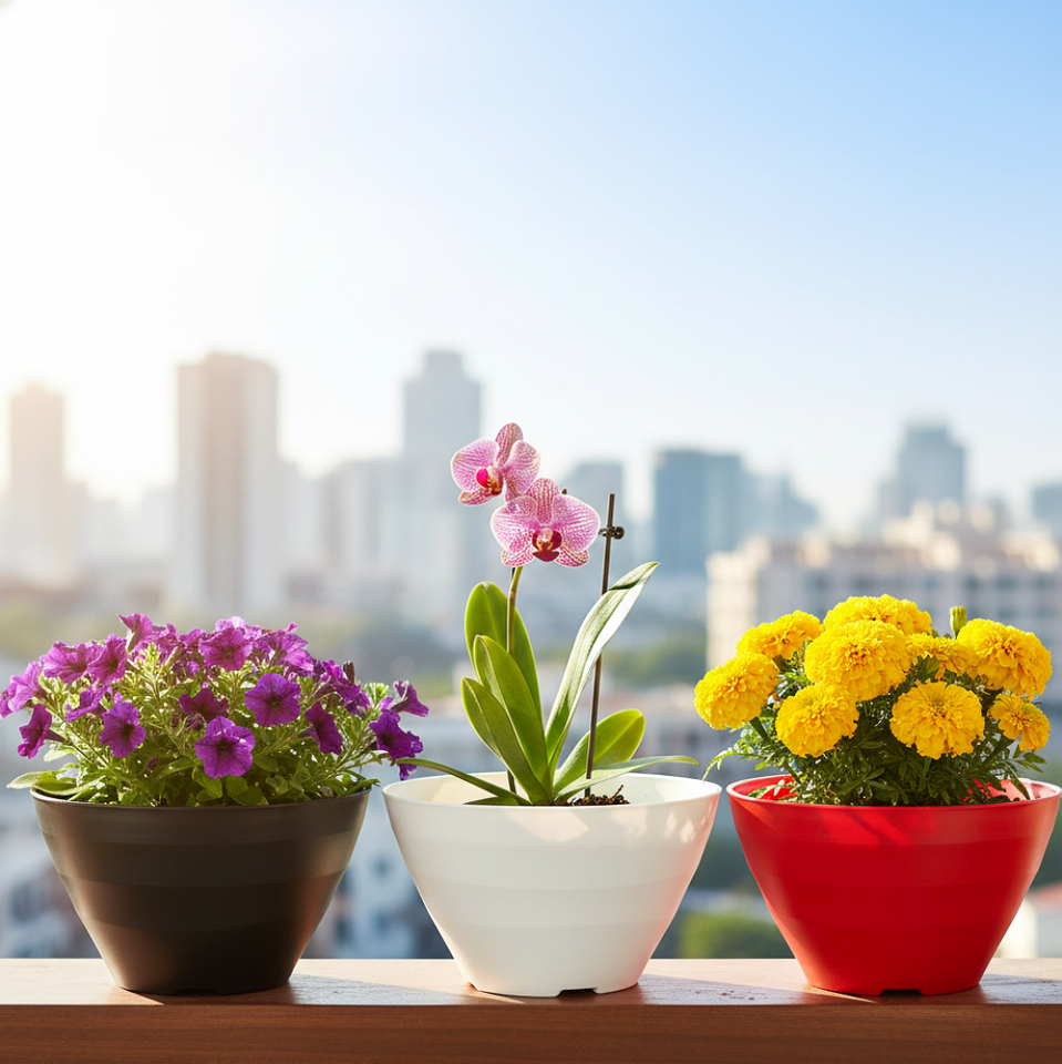 Pot de fleurs rond en plastique coloré pour jardin, pot de plantation durable pour plantes d'intérieur et d'extérieur, pot décoratif pour pépinière