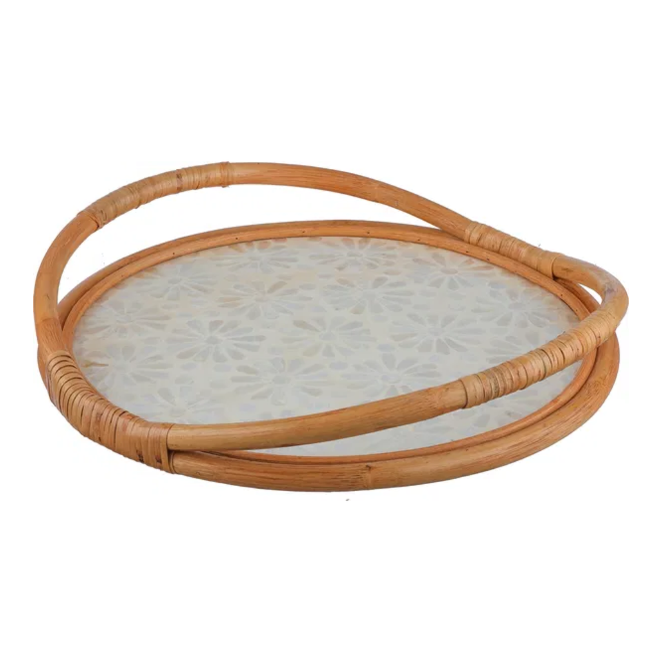 Nom du produit:Plateau de service rond en rotin MOP Plateau en rotin écologique