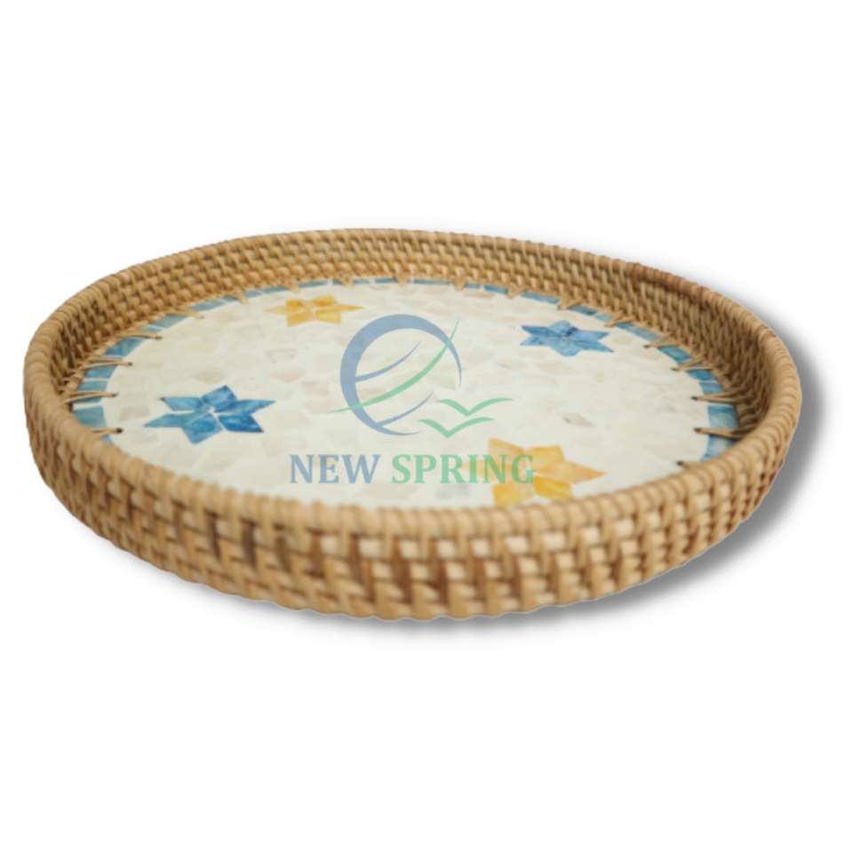 Plateau rond de rotin avec la perle artificielleNom du produit