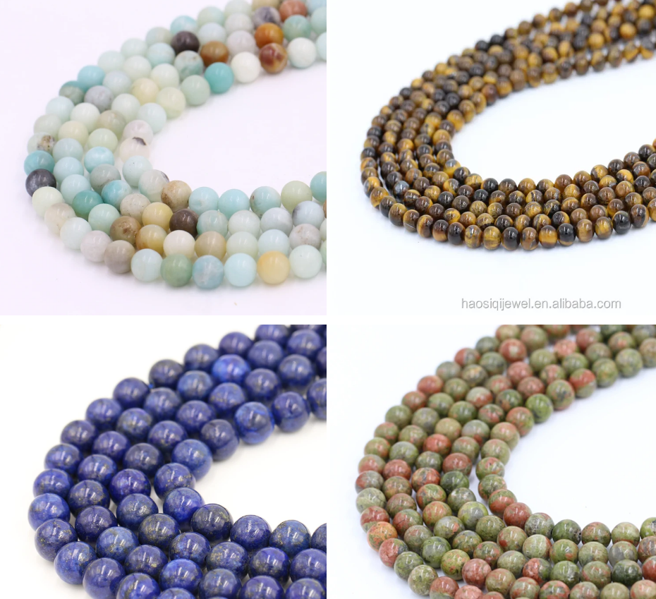 Perles rondes en pierre naturelle Agates œil de tigre de lave Lapis lazuli Jade émeraude perles en vrac pour bijoux à bricoler soi-même vente en gros