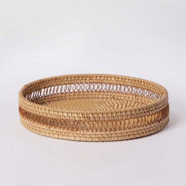 Vente en gros de plateaux à fruits ronds traditionnels en rotin naturel faits à la main de différentes tailles plateaux de service en rotin personnalisés plateaux de décoration intérieure
