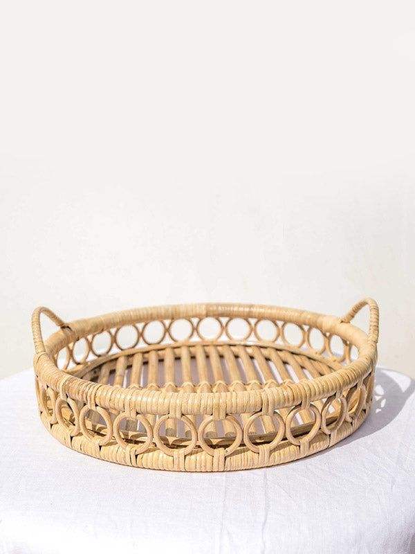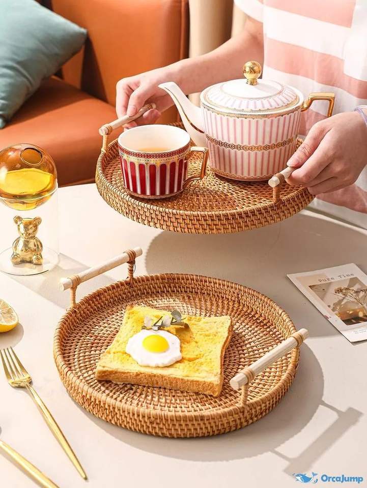 Wholesale Round Traditional Hand Made Rattan Natural Fruit Tray Different Sizes Customize Rattan Serving Trays Home Decor Trays