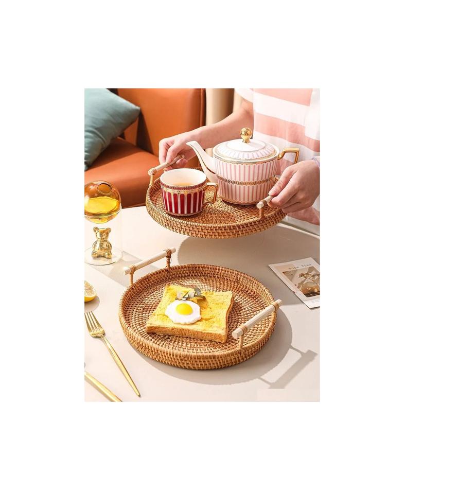 Vente en gros de plateaux à fruits ronds traditionnels en rotin naturel faits à la main de différentes tailles plateaux de service en rotin personnalisés plateaux de décoration intérieure
