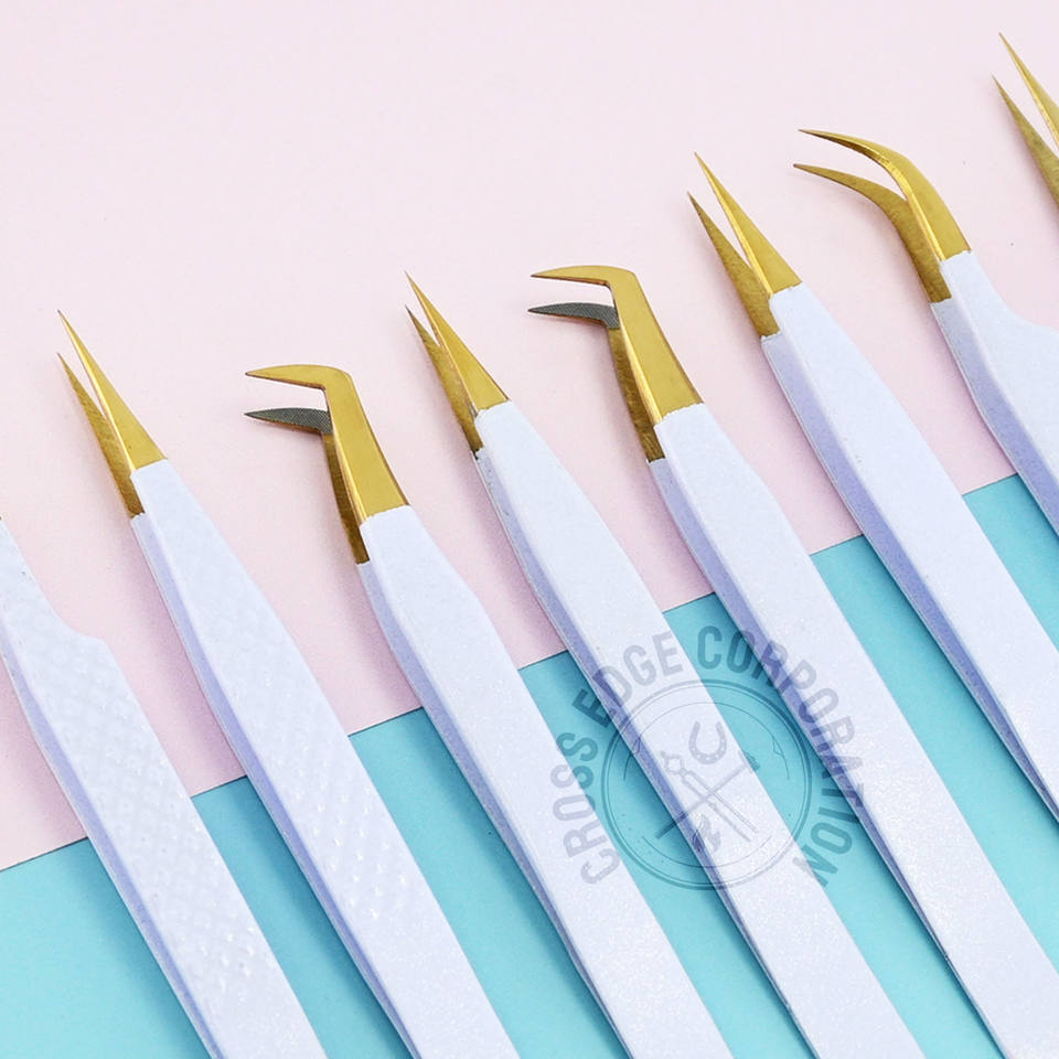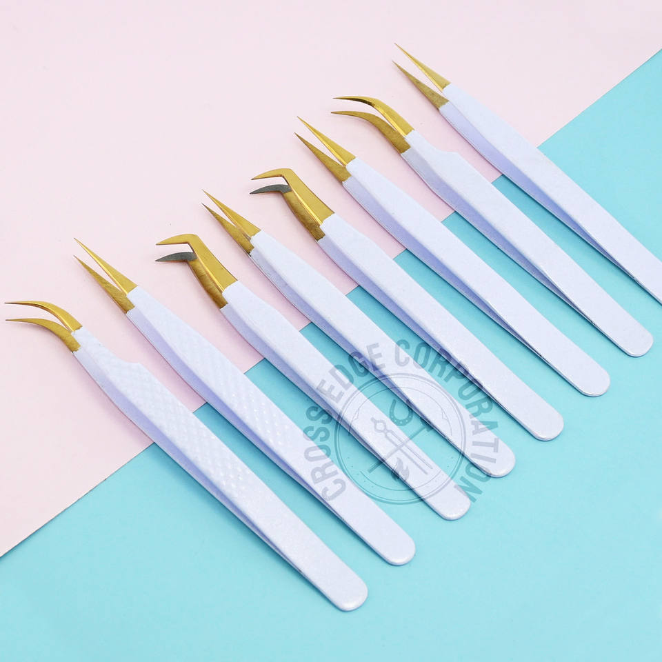 Extensions de cils de volume russe en gros pince à épiler Extension de cils à volume individuel Fabriqué à la main Pointe en or blanc