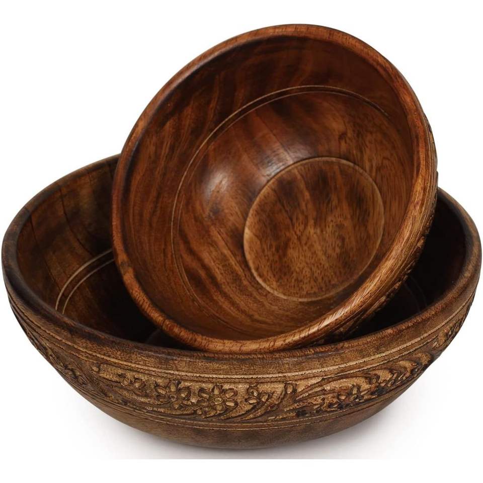 Grand saladier en bois rustique personnalisable – Vaisselle écologique pour fruits et collations
