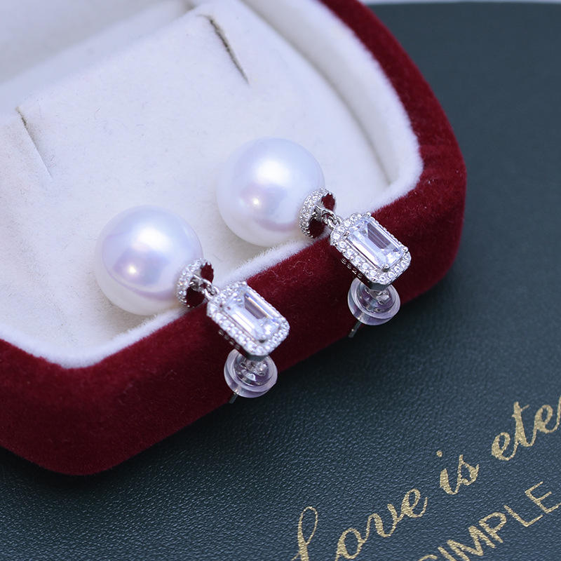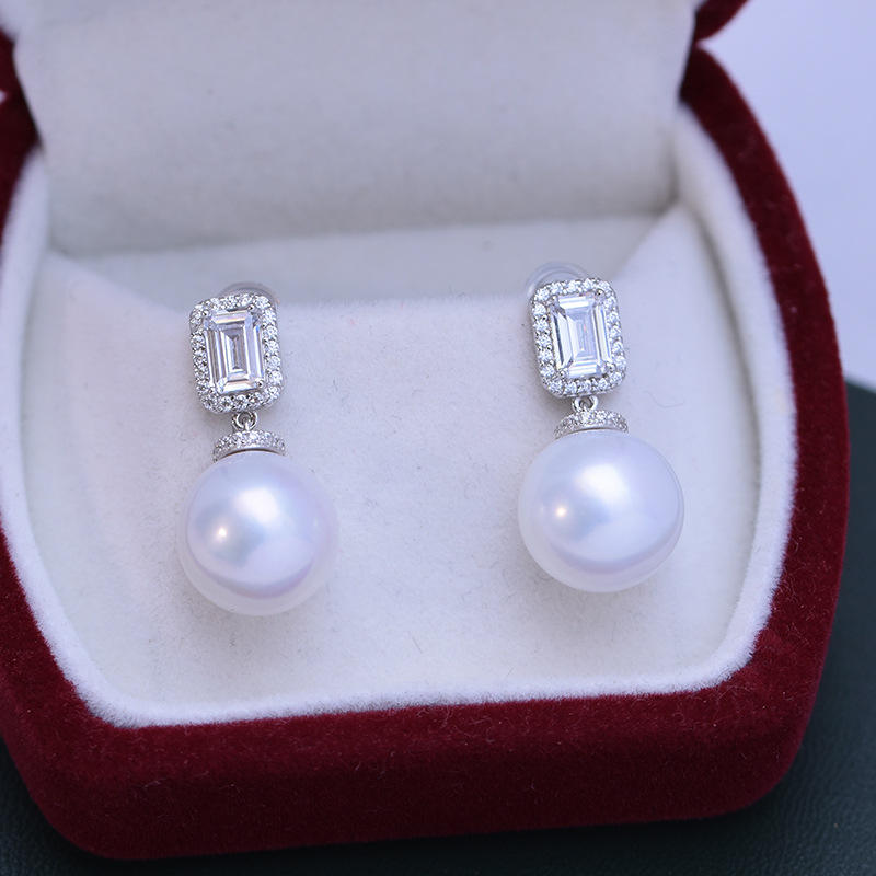 Wholesale S925 Silver Freshwater 10-11mm Ear Buckle Ring Strong Light White Purple Pearl Bucket Shaped Fine Dangle Earrings