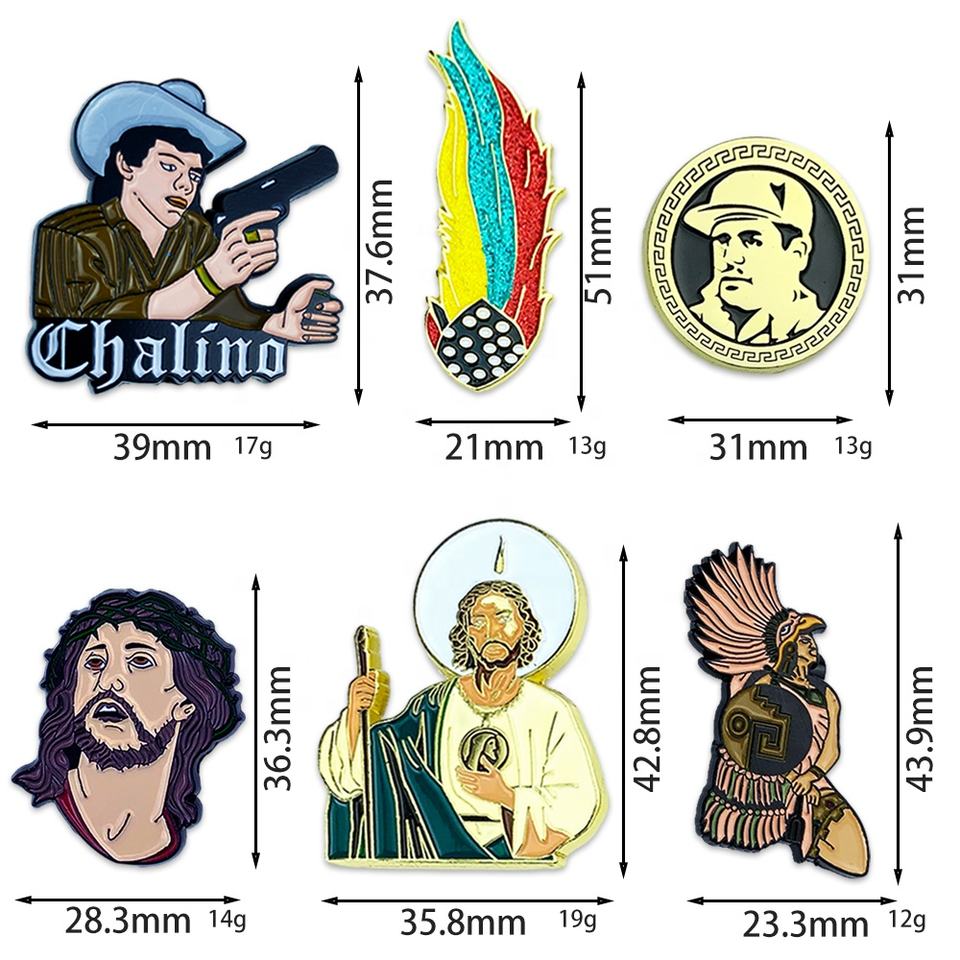 Vente en gros d'épingle Sam Judas Épingle à chapeau en émail personnalisée Protection de Dieu Épingles à chapeau mexicaines